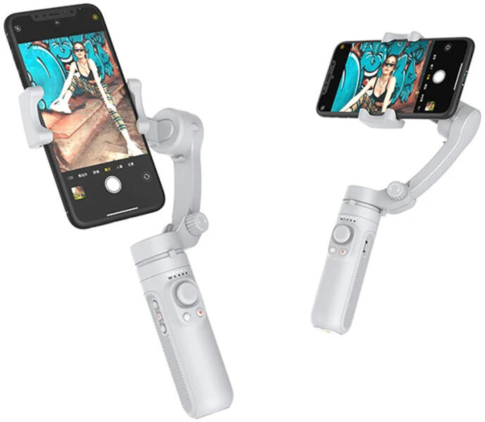 Techsuit - Phone Gimbal (SK062) - 3 tengelyes, intelligens követés, automatikus kalibrálás, joystick, összecsukható, 2500 mAh - szürke